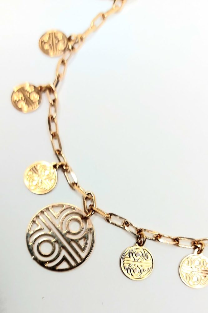 Laissez-vous séduire par le charme délicat de notre bracelet en plaquage or aux pampilles complexes qui capturent avec élégance la féminité et la grâce. »Offrez-vous l’exclusivité de notre bracelet créateur, confectionné en quantités limitées pour celles et ceux qui apprécient le vrai luxe. »